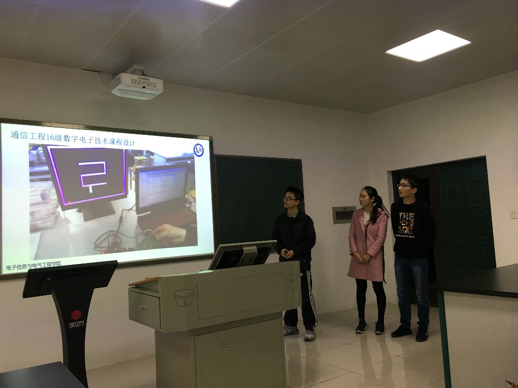 3月16日,电子信息与电气工程学院开展2016级通信工程专业《数字电子技术》课程设计答辩和原型系统展示活动。课堂上,同学们“玩”起了自己设计的体感游戏机。