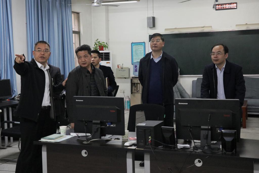 校领导检查中控室设备运行及涵虚楼教室