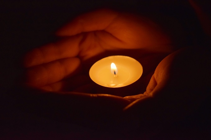 活动参与者双手捧烛哀悼