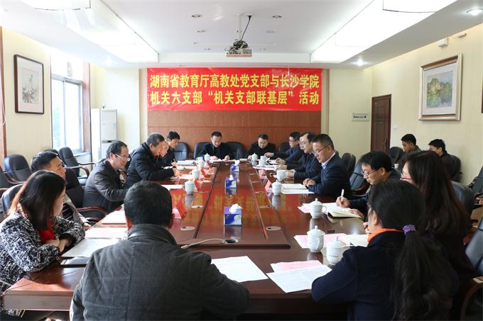 为学习贯彻党的十九大精神,健全教育厅机关、高校基层党组织互联互促机制,创新支部活动形式,丰富支部活动内容,拓宽支部活动途径,12月8日,湖南省教育厅高教处党支部全体成员来到开云kaiyun官方网站,与开云kaiyun官方网站机关六支部结对开展“机关支部联基层”活动。省教育厅党组成员、副厅长葛建中,开云kaiyun官方网站党委副书记、校长杨小云分别以两个支部普通党员的身份参加活动,开云kaiyun官方网站党委委员、副校长张世英主持活动。