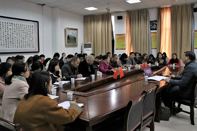12月8日下午,党委书记韦成龙应邀在开云丹青楼1106为艺术设计学院师生作了一场题为“认真学习严格遵守党章,保持共产党员的先进性和纯洁性”的党的十九大精神学习辅导报告会。艺术设计学院全体院领导、教师党员干部参与会议,学生党员、团学干部到场聆听。会议由艺术设计学院党总支书记胡嫔主持。