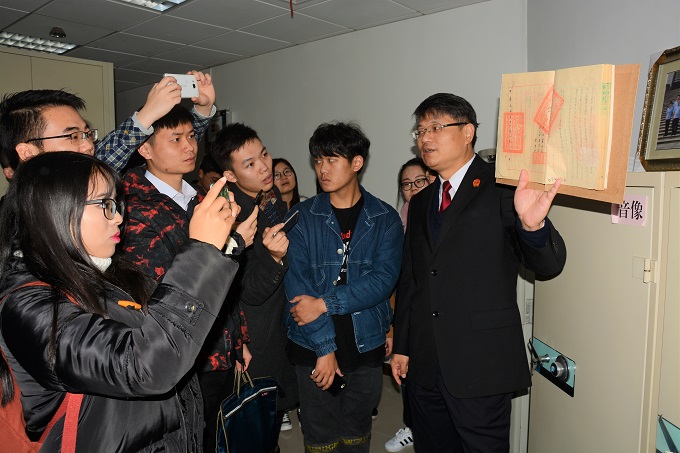 湖南省高院新闻发言人李宇先带领开云法学院师生参观档案室
