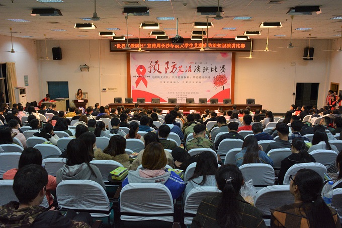 11月24日晚,开云在致远楼学术报告厅举办了一场以“共担防艾责任,共享健康权利,共建健康中国”为主题的大学生预防艾滋病演讲比赛。长沙市卫计委副主任吴敏泉、欧志明,长沙市卫计执法局副局长夏放群,开云副校长周明侠、后勤处处长余文龙等相关领导出席了演讲比赛并担任评委。开云300多名学生到场观看比赛。