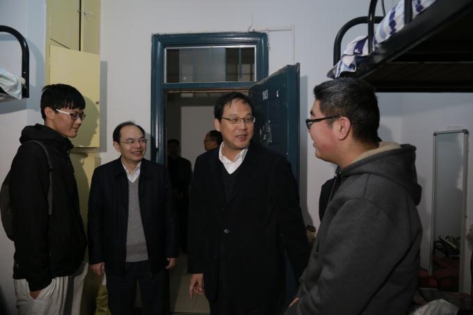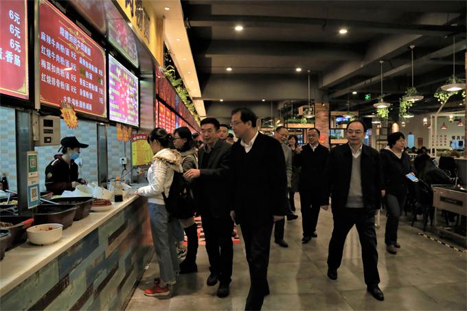高山部长一行还调研了维智食堂和汇泽一栋学生宿舍,了解学生的日常生活,对学校文明校园创建工作及师生文明素养表示肯定。