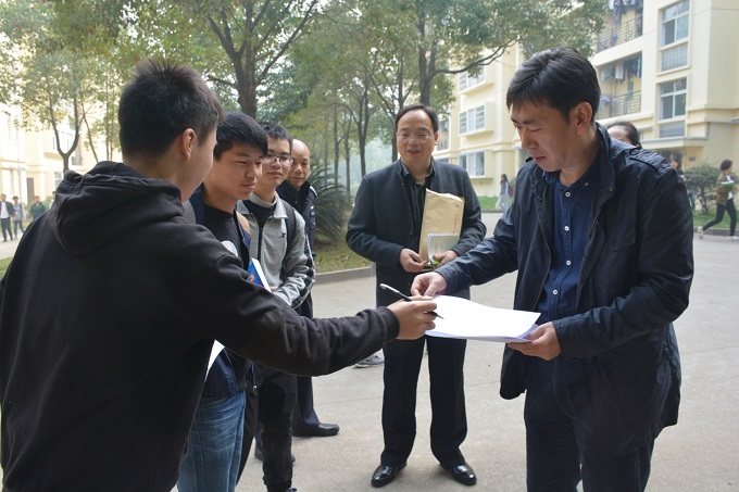 检查组先后来到图书馆、致远楼、汇泽宿舍园区、理工楼、网络与现代教育技术中心、明志楼等地,仔细察看了消防设施、供电系统、视频监控系统、门卫安保配置、学生安全教育与管理、实验室废料处理、校园周边交通安全等校园安全工作情况;同时查阅了相关工作台账资料,向学生随机发放调查问卷收集反馈意见,并现场询问门卫保安了解情况。