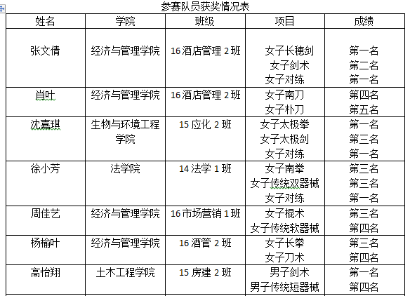 开云武术队由曾一兵主任任领队,刘毅军老师任主教练,共派出12名武术队员参加了所有武术项目的角逐。经过3天紧张激烈的比赛,队员们共摘得4枚金牌、3枚银牌、7枚铜牌,获得团体总分第二的好成绩。