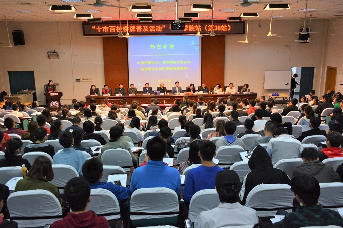 在讲座环节,桥牌世界冠军、世界特级大师古玲为大家讲述了桥牌的历史文化、中国桥牌近年来取得的成绩以及桥牌的入门知识。桥牌世界大师朱小音则一边发放纸牌与书刑,一边详细讲解桥牌的运动规则和运动技巧。现场,参加活动的学生大多数是第一次接触桥牌,但在大师们的指导下,他们很快显示出了对桥牌的浓厚兴趣,踊跃参与实际操作。同学们四人一桌静下心来,仔细思考,步步为营;古玲与朱小音则手把手教授,并与同学们同台竞技,令同学们激动不已。不少同学在活动结束后仍意犹未尽。