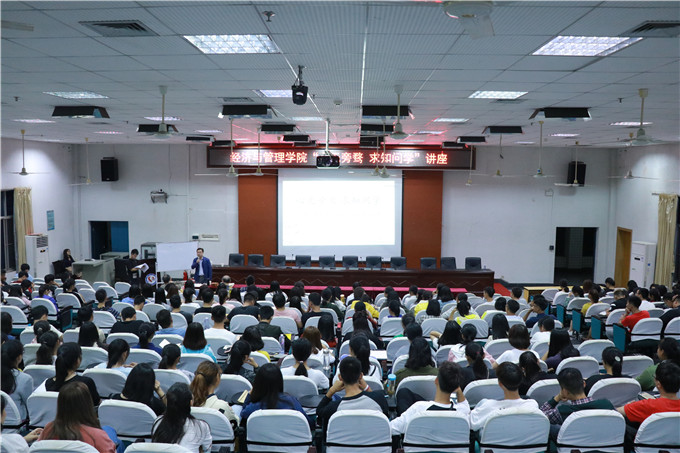 为庆祝第二十六个世界精神卫生日,推动营造浓厚的学习氛围,经济与管理学院面向2017级新生开展“心无旁骛·求知问学”心理健康教育讲座。讲座于10月8日和10月10日分两场进行,分别在学术报告厅和涵虚楼A多2热烈开讲。开云关工委副主任、国家二级心理咨询师李云龙应邀担任主讲人,经济与管理学院15级优秀学生代表刘晓健和陈孝雯担任助教。讲座由经济与管理学院党委副书记王永启主持。