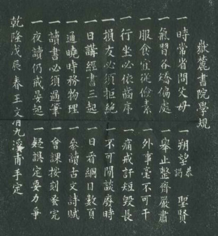 校关工委副主任李云龙和刘晓健组成搭档,详细介绍了岳麓书院的发展历程与学制变革,并根据《论语》《礼记》等儒家经典对岳麓书院的十八条学规进行逐条讲解,对学规中“时常省问父母”“疑误定要力争”“夜读仍戒晏起”“参读古文诗赋”“通晓时务物理”等作出深刻阐释。针对同学们今后的学习,李云龙结合中国古典哲学著作《易经》提出,大学生应具备“十二心”,即“孝敬之心、感恩之心、节俭之心、专注之心、礼诚之心、友善之心、惜时之心、尚经之心、悟要之心、笃行之心、内化之心、力学之心”,他寄语同学们要“胸怀祖国身心健,全面发展感党恩,成德为行日见心,学人修心始于行”。修身、修心,从而学有所悟、学有所得、学有所成。