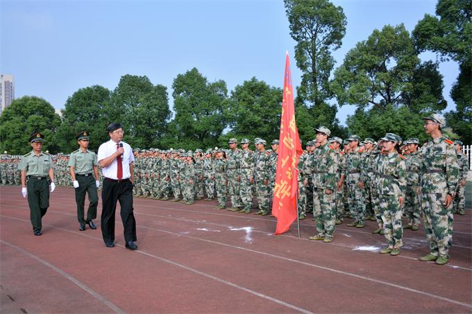 党委书记韦成龙检阅2017级新生军训队伍