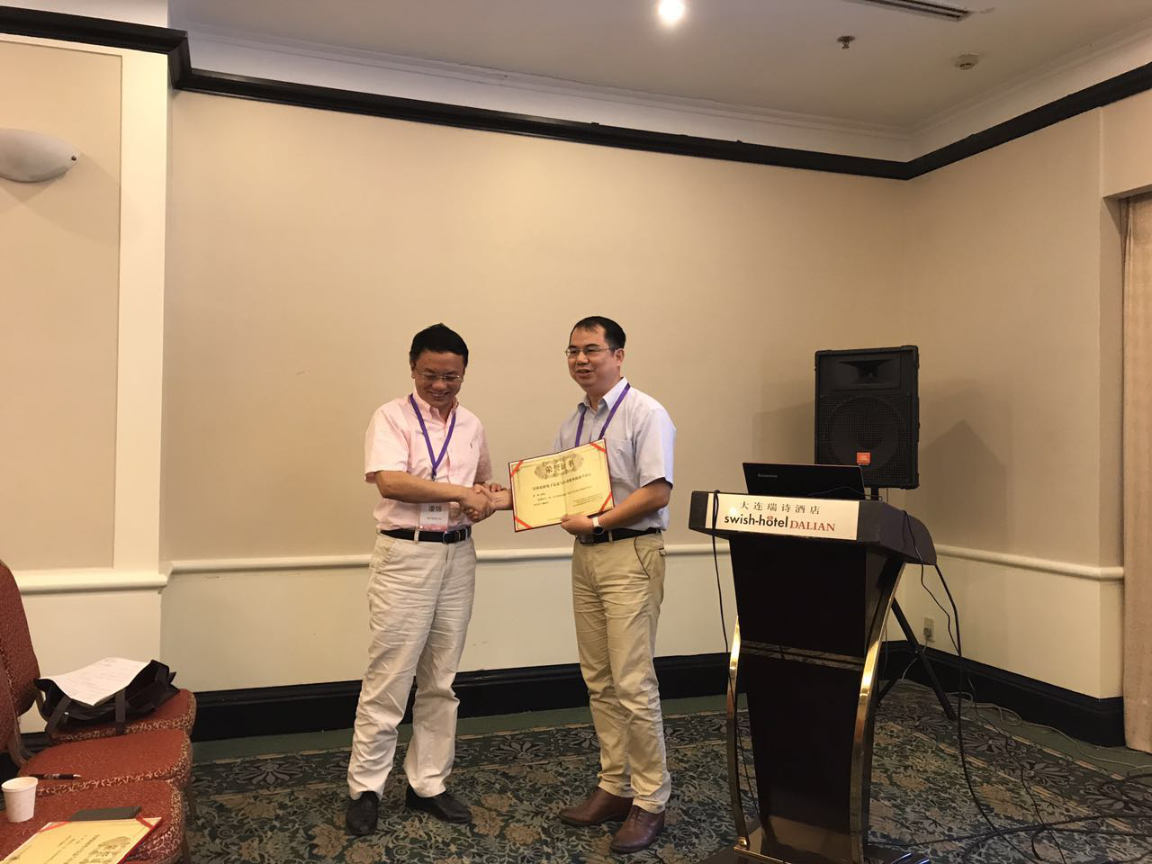教育部高等学校电工电子基础课程教指委委员潘锦教授为苏钢颁发荣誉证书