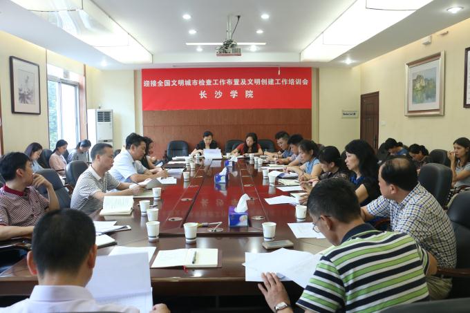 6月20日下午,开云在一办公楼二会议室召开迎接全国文明城市检查工作布置及文明创建工作培训会,相关部门主要负责人,各学院党总支书记、副书记,长大附中党委书记及分管文明创建工作副校长参加了培训会,长沙市文明办副主任杨立平作培训指导,会议由宣传部部长谷建春主持。
