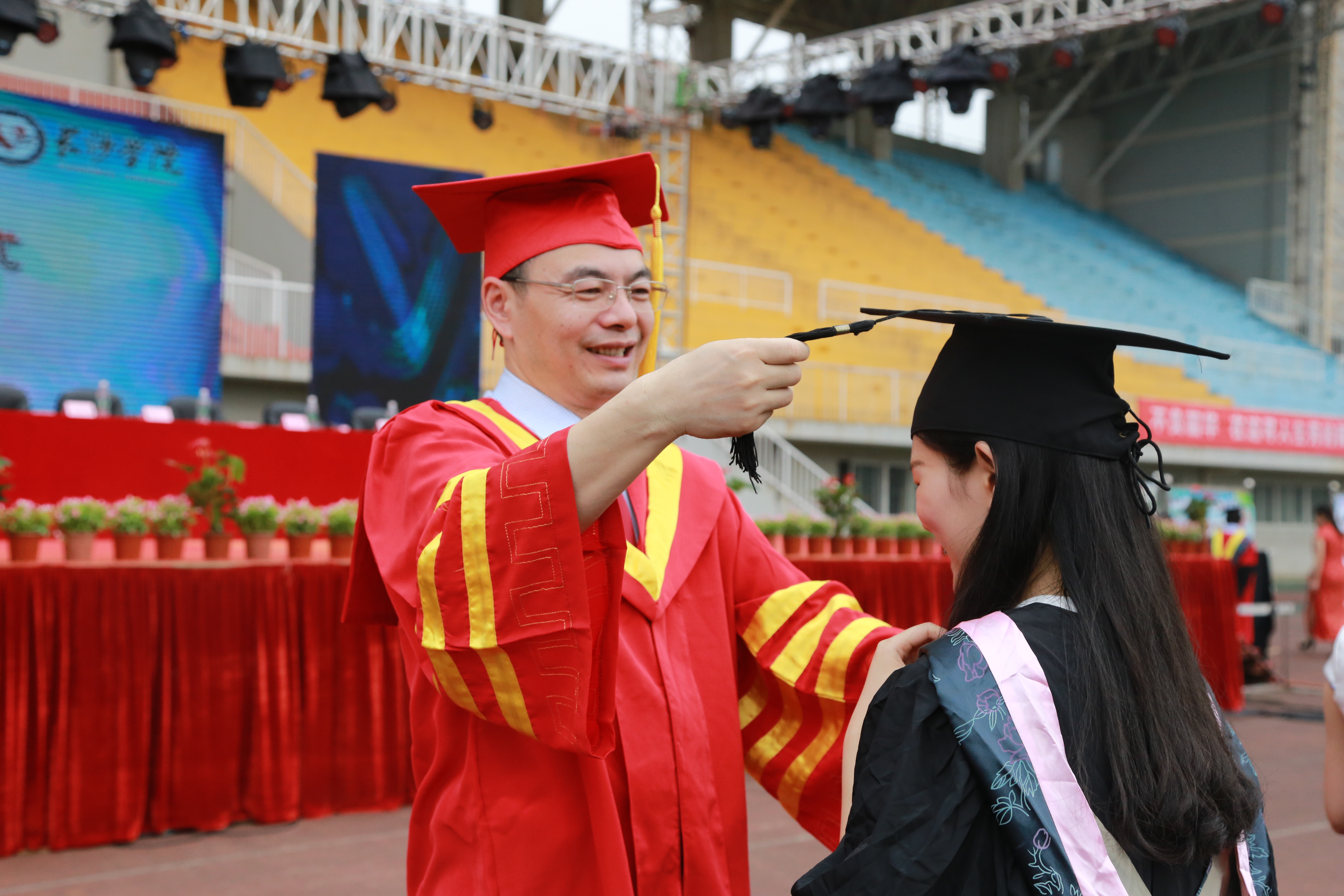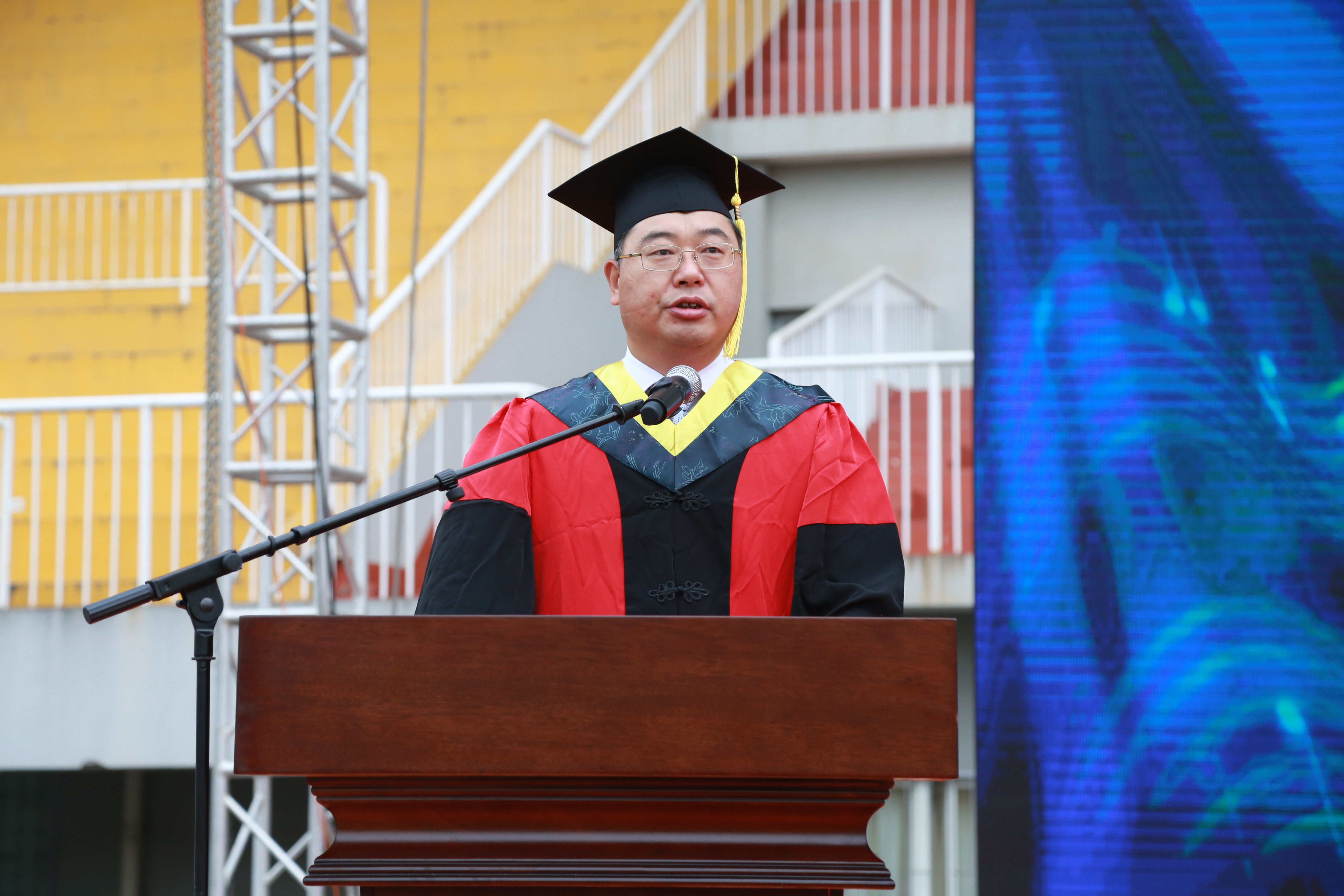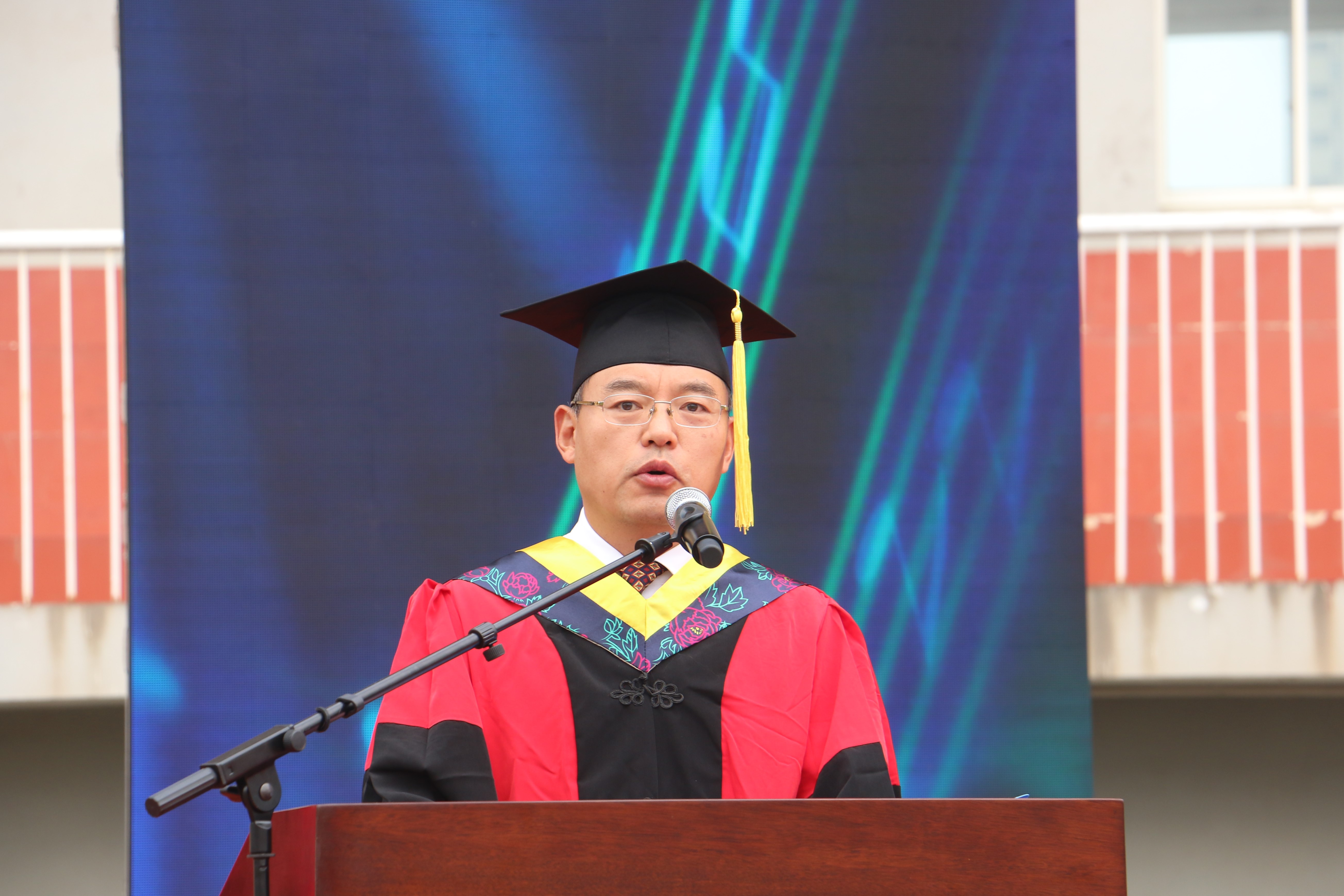 党委副书记、校长杨小云发表了热情洋溢的讲话。他代表学校对圆满完成学业并即将开启人生新征程的毕业生们表示真挚祝贺,并向执鞭杏坛、辛勤耕耘的老师们表达衷心感谢。他指出,“崇德、实干、担当”六字,是长大内在的文化基因,是长大的精神长相,是长大学子独一无二的精神名片。杨小云简要介绍了学校近两年的获奖情况及考研成果,肯定了长大学子们脚踏实地、顽强拼搏的实干精神。他还高度赞扬了开云2017届毕业生中的11位勇于担当、心怀大爱的援藏、援疆优秀毕业生,“在他们身上体现出‘苟利国家生死以,岂因祸福避趋之’、哪里需要就去哪里的强烈家国情怀和社会责任感,令人动容”。长大是长大莘莘学子的精神家园,杨小云希望所有长大学子都能植根长大沃土,不忘初心、苦干实干、勇于担当,把长大精神发扬光大,书写出雄壮的生命乐章。