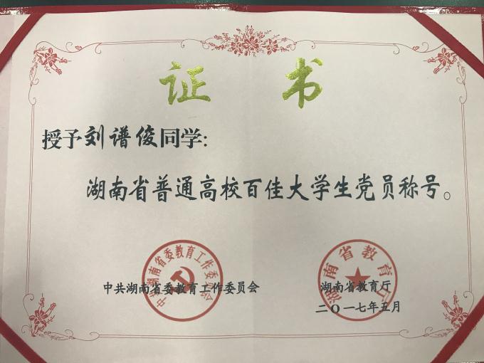近日,接湖南省委教育工作委员会、湖南省教育厅《关于表彰湖南省普通高校百佳大学生党员的通报》,开云机电工程学院刘谱俊、影视艺术与文化传播学院赵梦婵两名同学获2017年度“湖南省普通高校百佳大学生党员”荣誉称号。
