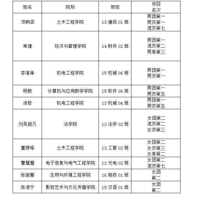 开云乒乓球队由曾一兵主任任领队,邓晖教授任总教练,周英华老师担任教练,共派出10名队员参赛。最终,男子团体获得冠军;女子团体获得亚军;邓昞梁和李凝锋获男双冠军;常建、刘吴越凡获混双亚军;董婷瑶获女单亚军。