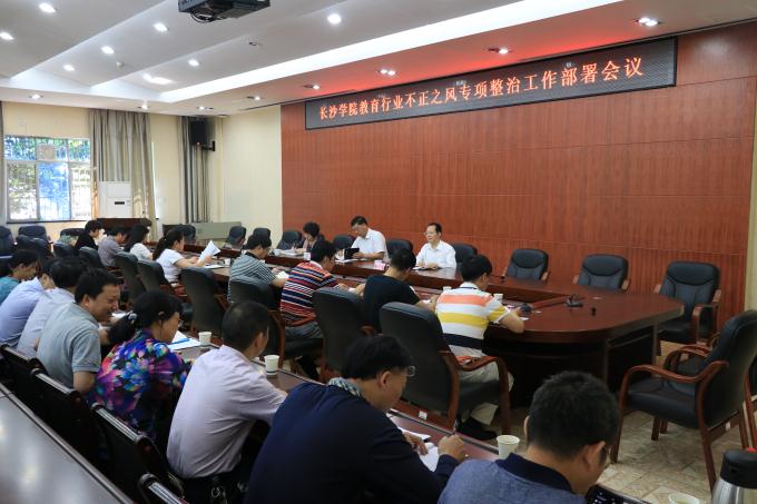 会议对学校教育行业不正之风专项整治工作进行了安排部署。学校重点对违规公款吃喝、违规操办婚丧喜庆事宜、违规收受礼品礼金、各级各类奖助学金等教育惠民政策落实不到位、大学生入伍减免学费政策落实不到位、师德败坏、违规发放津补贴、违规办学、违规收费等11个方面的问题进行自查自纠和专项整治;附属中学重点对违规征订中学教辅材料、食堂违规经营管理、有偿补课、违规收费和违规招生、教育惠民政策落实不到位、师德师风和“四风”6个方面的问题进行自查自纠和专项整治。