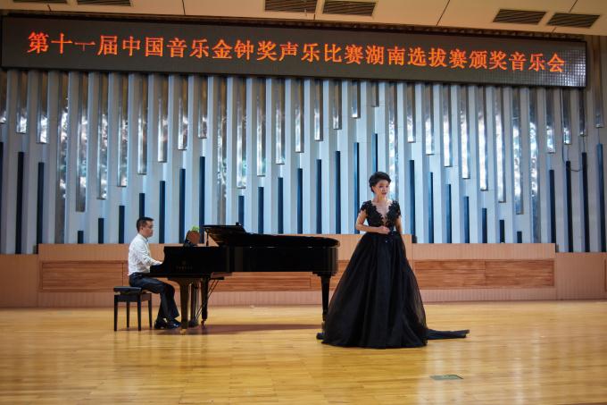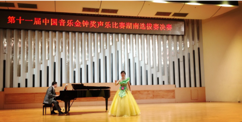 5月13日、14日,第11届中国音乐金钟奖声乐比赛湖南赛区选拔赛初赛、决赛在长沙举行。开云音乐学院伍珊妮、张瓅文两位青年教师参加了美声组、民族组的比赛,伍珊妮获得美声组金奖、张瓅文获得民族组铜奖。在14日晚举行的颁奖晚会上,伍珊妮应邀参加表演,其比赛录像将被选送中国音乐家协会参加全国的差额评选。