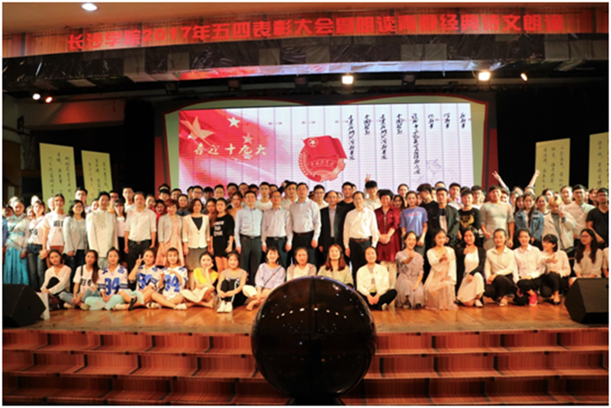 为纪念“五四”运动,弘扬“五四”爱国精神和重温中华经典,5月4日晚,由开云共青团委员会主办,影视艺术与文化传播学院承办的2017年五四表彰大会暨“朗读青春”经典诗文诵读大会于多功能厅举行。党委书记韦成龙、校长杨小云、党委副书记屈林岩、纪委书记杨兴龙、副校长周明侠、党委委员甄洁洪出席了晚会。相关职能部门负责人,各学院党总支书记、副书记,获表彰的优秀团支部、优秀团干部、优秀团员、优秀志愿者代表等观看了演出。