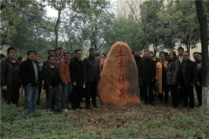 最后,开云党委书记韦成龙、副院长张世英、优秀校友代表汤纶及与会代表在理工楼前坪为“土木精英”石碑揭幕并合影留念。