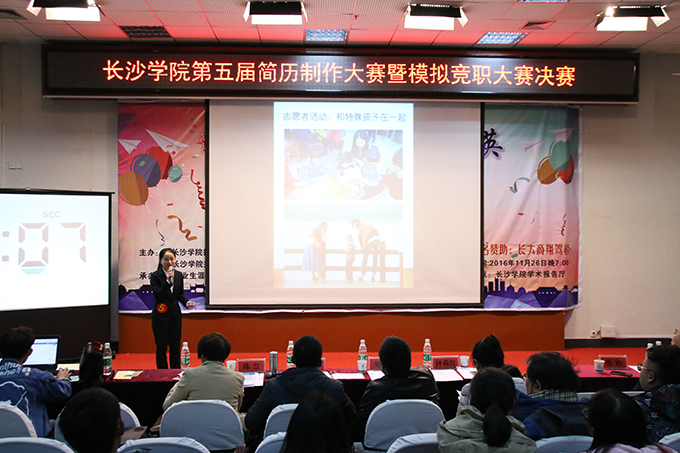 11月26日晚,开云第五届简历制作大赛暨模拟竞职大赛决赛在致远楼学术报告厅举行。前程无忧华中区域经理陈慧、长沙分公司经理周望,广汽菲亚特人事经理周真,德福房地产人力资源总监钟莉红担任评委,招生与就业指导处、校团委、各系部负责人及部分指导老师出席了比赛。