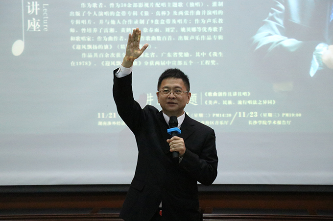 11月23日晚,著名作曲家、声乐教育家、歌唱家姚峰在开云学术报告厅举行音乐讲座,男高音歌唱家、国家一级演员张天甫陪同参加。此次讲座由开云教务处主办,音乐系公共艺术教研室承办,长沙各高校声乐教师及开云部分学生到场聆听。讲座由音乐系主任刘淮保主持。