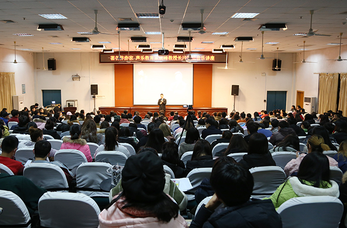 讲座以“美声、民族、流行唱法之异同”为主题。姚峰首先简要介绍了美声唱法的历史,为了使同学们更好地理解美声唱法,姚峰在现场倾情演唱了《我亲爱的》和《爱的甘醇》两首意大利歌曲。他将西方的“六个声部”与中国京剧的“五个行当”进行对比,精要地概括了其中深奥的乐理知识,并以歌曲《我亲爱的》的不同唱法为例,明确指出,一部世界声乐发展史往往与一部世界器乐发展史紧密相连。