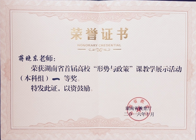 10月29日,湖南省首届高校“形势与政策”课教学展示活动决赛在南华大学举行,来自全省高校的150多位教师代表观摩了这次决赛。现场教学比赛持续了近5个小时,开云思想政治理论课教学部蒋晓东老师荣获本科组一等奖。