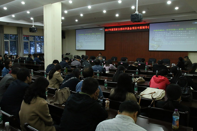 张建社教授和李方敏教授作项目申报辅导报告。他们分别从申报国家自然科学基金项目的重要性和项目申请书撰写两方面进行了具体辅导。张教授从学校发展及人才培养方面讲述了基金项目申报的重要性,他指出,基础积累是关键,前沿创新是灵魂。李教授则结合了个人申报及评审的实践经验,对申报过程中的重点与难点进行了细致解读,为老师们接下来的申报工作提供了宝贵的经验。就如何撰写好项目申报书这一问题,两位教授从基本信息、摘要、立题依据、研究方案、研究内容和其他注意事项等多个方面进行了精辟讲解。两位教授都强调了项目申报工作中团队合作的重要性、项目选题的准确性和创新性;内容的条理性、逻辑性;研究的合理性和可操作性。