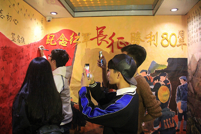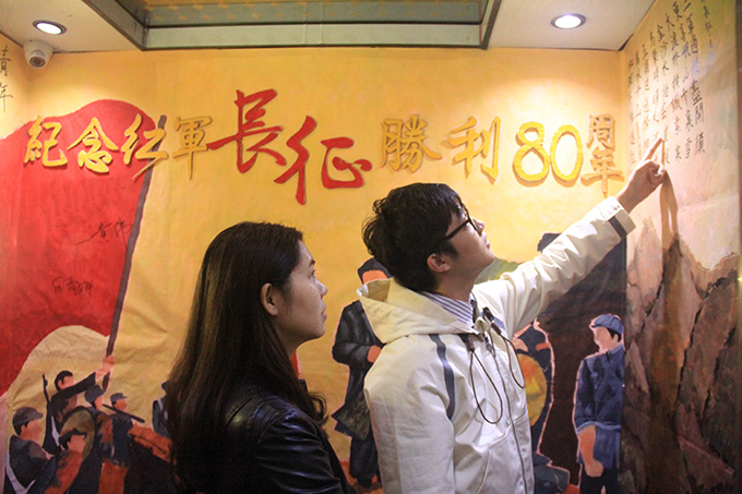 10月26日早上7点,开云kaiyun官方网站理工楼纪念红军长征胜利80周年主题电梯迎来了第一批“乘客”。踏进电梯, “纪念长征胜利80周年几个大字”映入眼帘,与梯壁上的毛泽东同志的《七律∙长征》交相辉映。“红军不怕远征难,万水千山只等闲”,大家被墙上的诗句吸引,情不自禁地跟着吟诵起来,有些同学在梯壁上的签名旗上签下了“长征精神永存”、“祖国富强”、“青年兴国”等感言。主题电梯的创意来自开云kaiyun官方网站机电工程系的青年学子,他们用社会主义核心价值观、红军长征精神、中国梦等元素营造了一个“红色空间”。