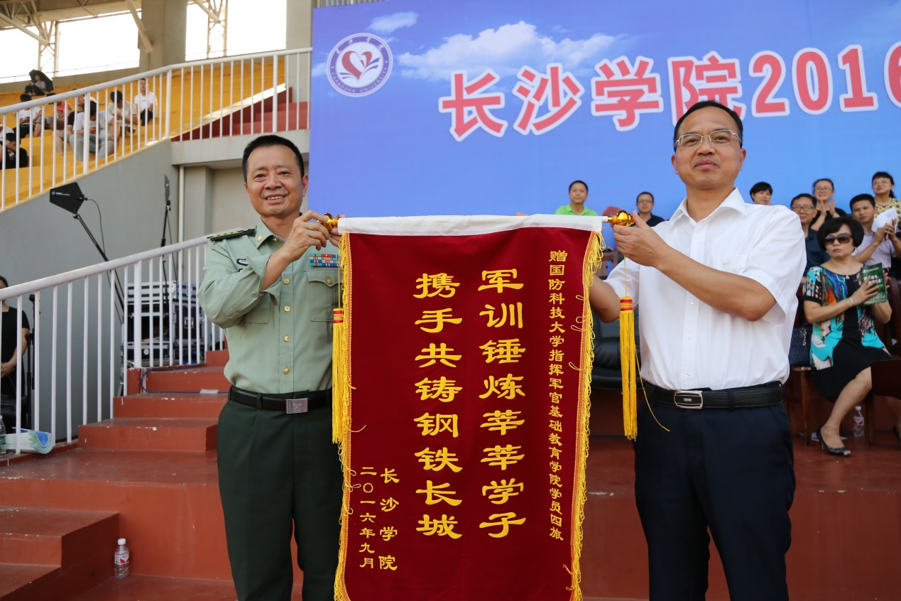 开学典礼上,副院长张世英代表学校宣读了《开云kaiyun官方网站关于表彰2016年军训先进集体、先进个人的决定》。副书记屈林岩代表学校向承训单位赠送锦旗,表达感谢。