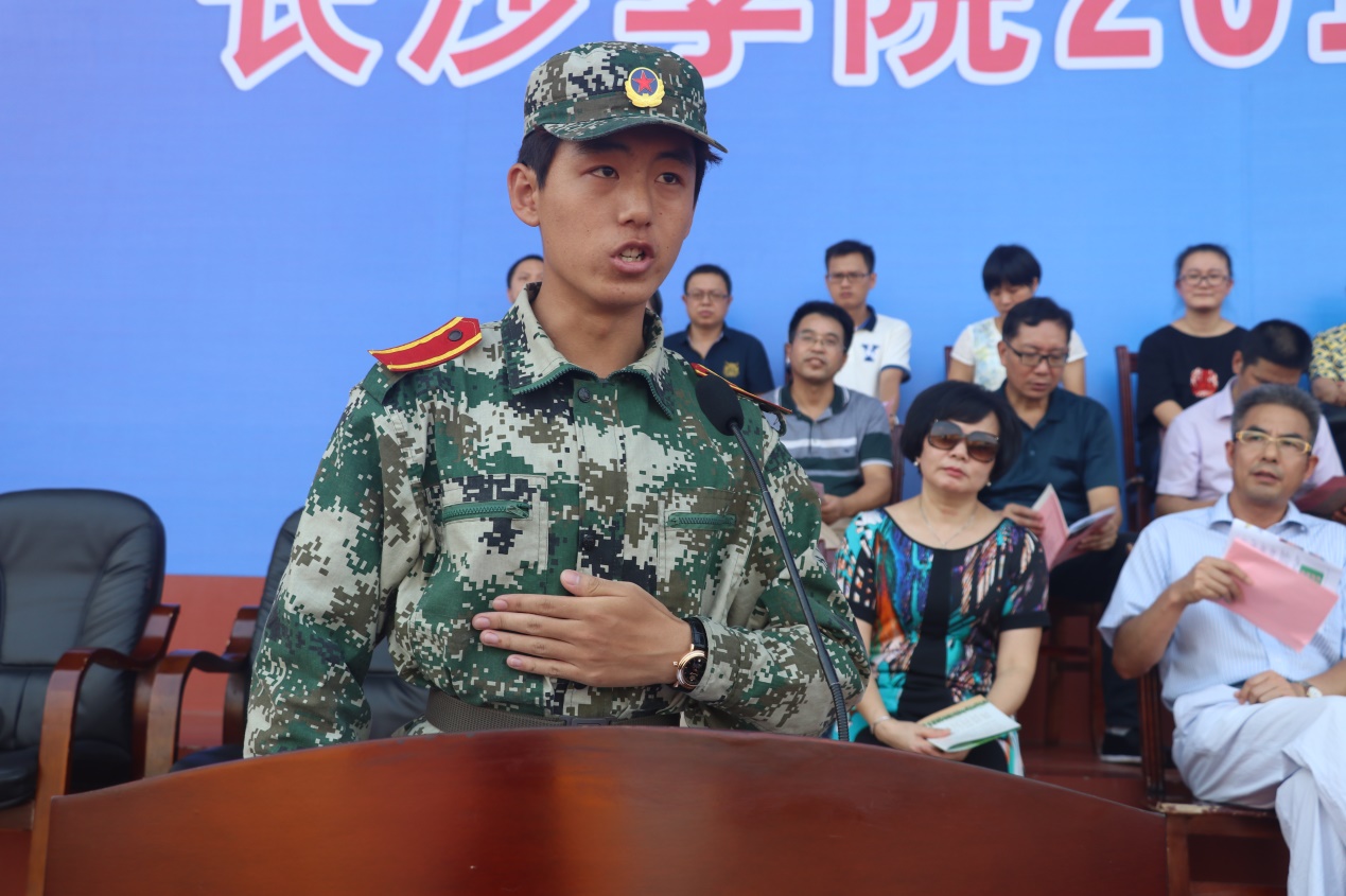 土木建筑工程系的新生毕江文代表全体新生庄严承诺:积极转换角色,尽快适应大学生活、掌握方法,勤奋学习;培养能力,积蓄力量,勇于尝试,高扬理想之帆,迎接大学的洗礼!