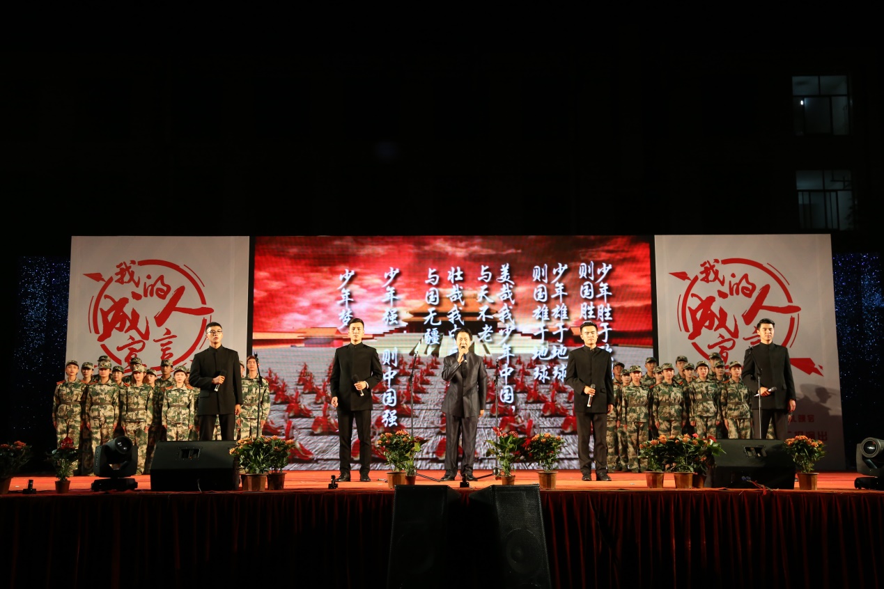 院长杨小云,党委副书记屈林岩,副院长周明侠,原党委副书记副院长、现关工委副主任李云龙,各职能处室负责人,各系党总支书记、副书记,16级全体辅导员老师,国防科大基础学院全体承训教官及3000余名新生观看了演出。