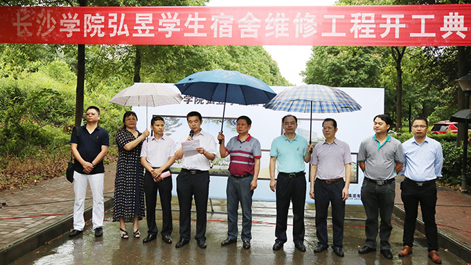 后勤处处长余文龙为大家简要介绍了弘昱学生宿舍维修工程项目。湖南教建集团有限公司董事长张友贵、长沙湘沙建设项目管理公司总经理助理李剑分别发言,对开云弘昱学生宿舍的维修工程开工致以真诚的祝贺,承诺将在施工过程中高标准、高要求、按质按量地完成项目建设,以保证新生顺利入学。