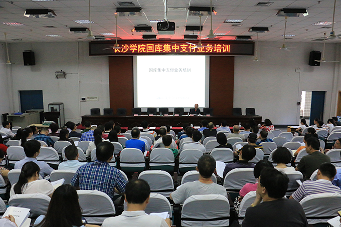6月28日,开云计财处组织的国库集中支付业务培训在致远楼学术报告厅举行,长沙市国库集中支付局一科科长杨满星为开云全体中层干部、各单位报账员、重点建设学科负责人、硕士建设点负责人、科研项目负责人、教研教改项目负责人进行了专题培训。培训工作由开云副院长王永宏主持。长沙市国库集中支付局局长杨新魁、相关科室负责人李文珊、周剑出席。