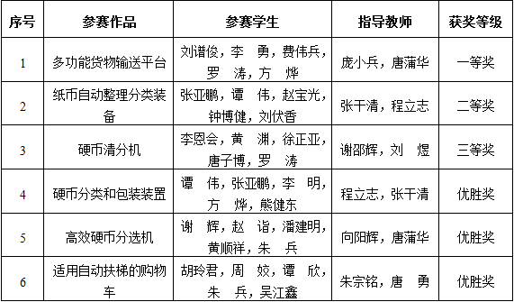 大学生机械创新设计大赛是国内最具影响力、培养学生工程实践能力和综合素质效果显著的大学生竞赛项目之一。此次大赛共有中南大学、湖南大学、国防科技大学等29所省内高校,179件参赛作品同台竞技,是湖南省历届以来参赛学校最多、作品最多、人数最多的一届。本届大赛主题为“服务社会——高效、便利、个性化”,设计作品涵括“钱币的分类、清点、整理机械装置;不同材质、形状和尺寸商品的包装机械装置;商品载运及助力机械装置”等。