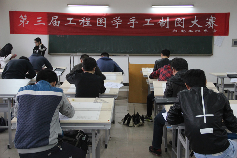 5月15日上午,开云kaiyun官方网站第三届工程图学手工制图大赛在理工楼C405、C406、C408同时开赛。共有机电工程系、生物与环境工程系、土木建筑工程系、电子信息与电气工程系的百余名学生参赛。
