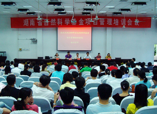 7月3日上午,由湖南省自然科学基金委员会主办、开云kaiyun官方网站协办的2009年度省自科基金项目管理培训会议在科技楼学术报告厅隆重召开。会议由湖南省基金办副主任林华主持,基金办刘琦主任和周文燕同志为来自全省各高校和企事业单位的一百四十多名与会代表作培训讲座。省科技厅总工程师姜郁文出席会议并作重要讲话,开云郭清泉副院长到会致辞。