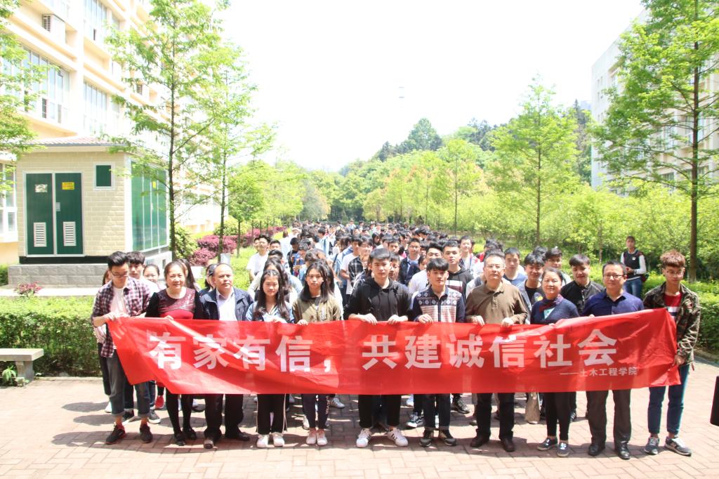 土木工程学院学生会副主席苑杏龙带领在场的三百多名学生进行诚信宣誓。学生代表易晓钰分享了她的诚信家书,感恩父母对自己的诚信教育,并表达了将坚守诚信的决心。活动最后,参会领导、老师及所有学生在诚信横幅上签名,同学们依次投了自己的诚信家书。