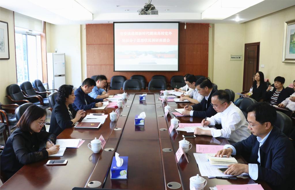4月19日下午,省委统战部副部长胡东风一行4人来开云就“新时代湖南高校党外知识分子思想状况” 进行专题调研。校党委书记韦成龙、党委副书记屈林岩,组织统战部、宣传部、人事处负责人以及学校党外知识分子代表参加调研座谈会。韦成龙主持会议。