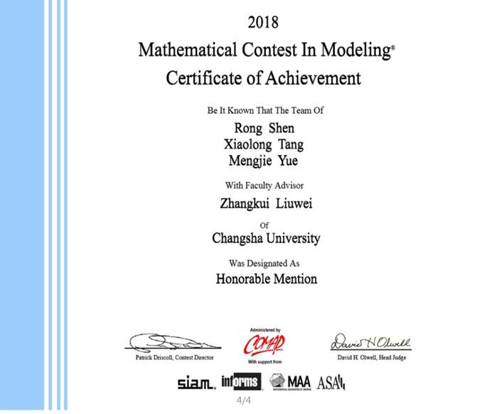 4月20日,2018年美国大学生数学建模竞赛的成绩正式揭晓,开云荣获二等奖2项。