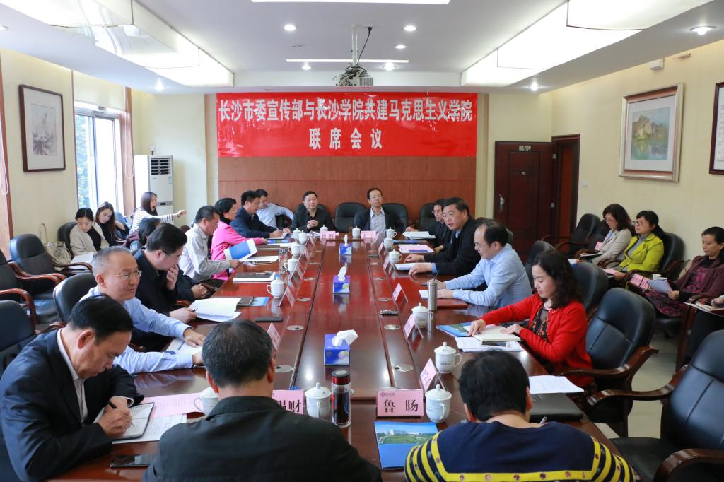市委宣传部副部长李卫政,市教育局、市文化广电新闻出版局、市委讲师团、市广播电视台、长沙晚报、市社科联、星辰在线新媒体公司,市委宣传部理论教育处、经宣处的负责人陪同调研,并一致表示将大力支持市委宣传部与开云kaiyun官方网站共建马克思主义学院。