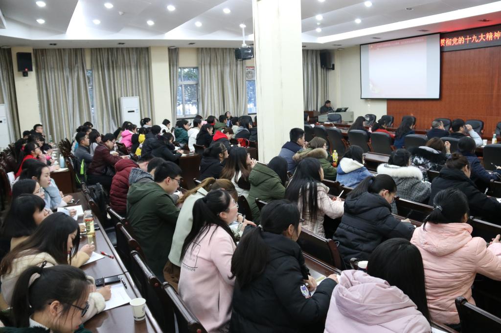 1月11日下午,党委书记韦成龙在开云图书馆一楼会议室为生物与环境工程学院、法学院、经济与管理学院、音乐学院的师生作了一场题为《认真学习贯彻党的十九大精神,发挥共产党员的先锋模范作用》的辅导报告。四个学院全体教师党员和学生党员聆听了报告,报告由法学院党总支书记张志刚主持。