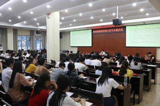 颁奖活动结束后,李伦娥开展了题为《教育新闻的发现和采写》的专题培训,讲授了新闻价值、消息采写、人物通讯采写、如何提高投稿命中率等四个方面的内容。她结合自己三十四年的新闻工作经验与具体的新闻案例,生动地讲述了如何发现和写好教育新闻。李伦娥指出,消息采写应抓住事件的特点、巧妙地选择切入角度,从标题、导语、结构入手,透过现象抓住事件本质。同时,她也强调,采写人物通讯时要从事件的全面情况、主要事实、有关背景以及典型事例和细节出发,做好充分的准备工作。