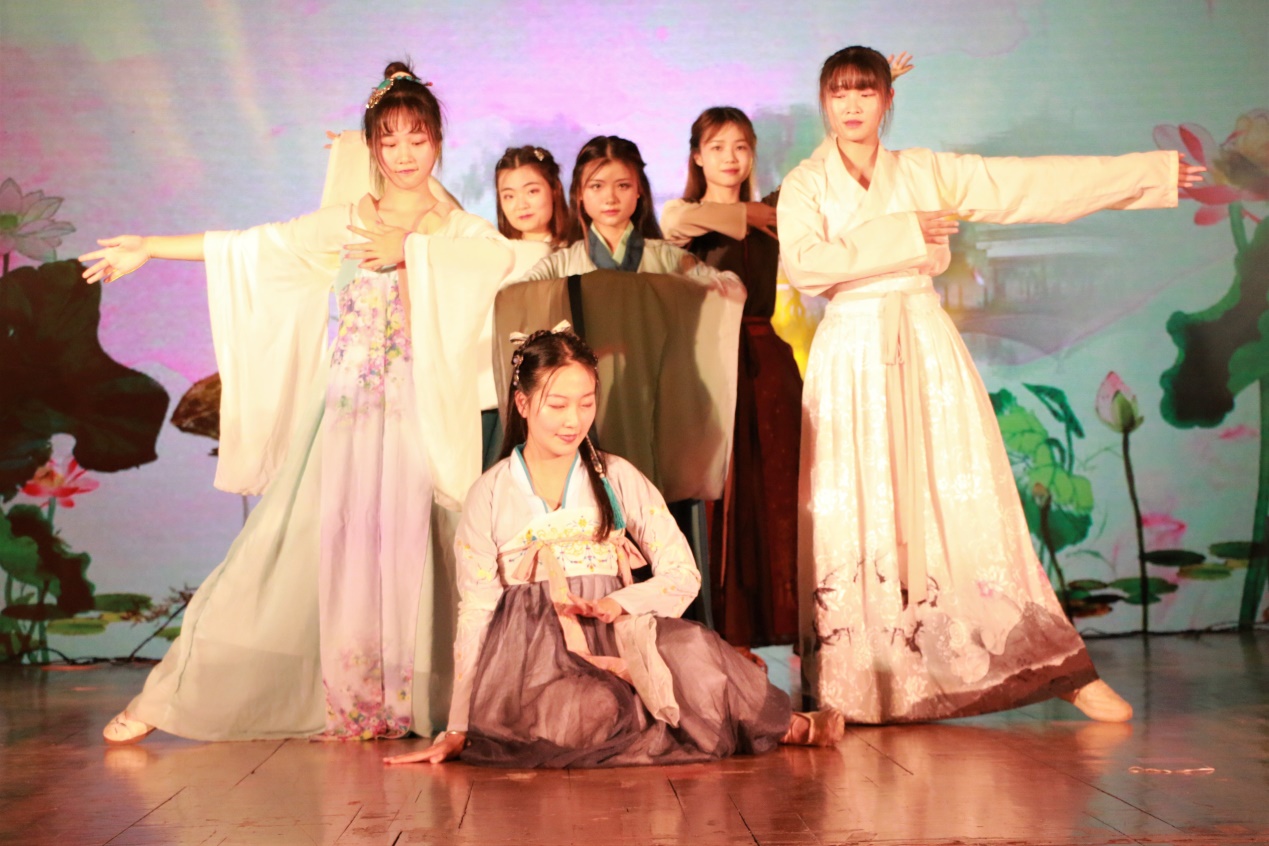 吉他协会的乐队演奏拉开了晚会的序幕,学社联成员带来的开场舞瞬间点燃全场,各学生社团纷纷使出“看家本领”来展现青春风采。明源国学社的古风舞蹈《山鬼》展现了拥有如花容颜的少女对爱情的渴望;武术协会的舞剑潇洒、拳法霸道,赢得观众阵阵掌声;曲艺一笑相声社将经典相声旧段新编,展现了开云学子丰富多彩的校园生活,将现场气氛推向高潮。