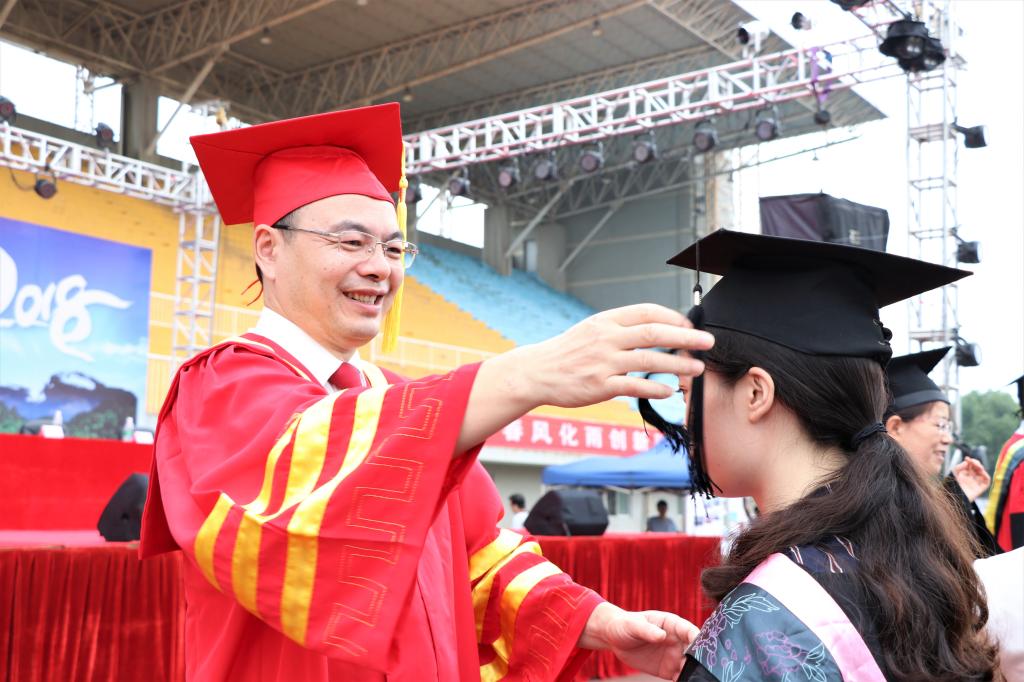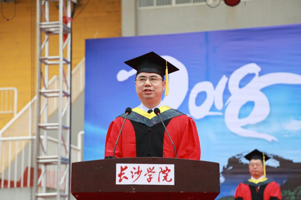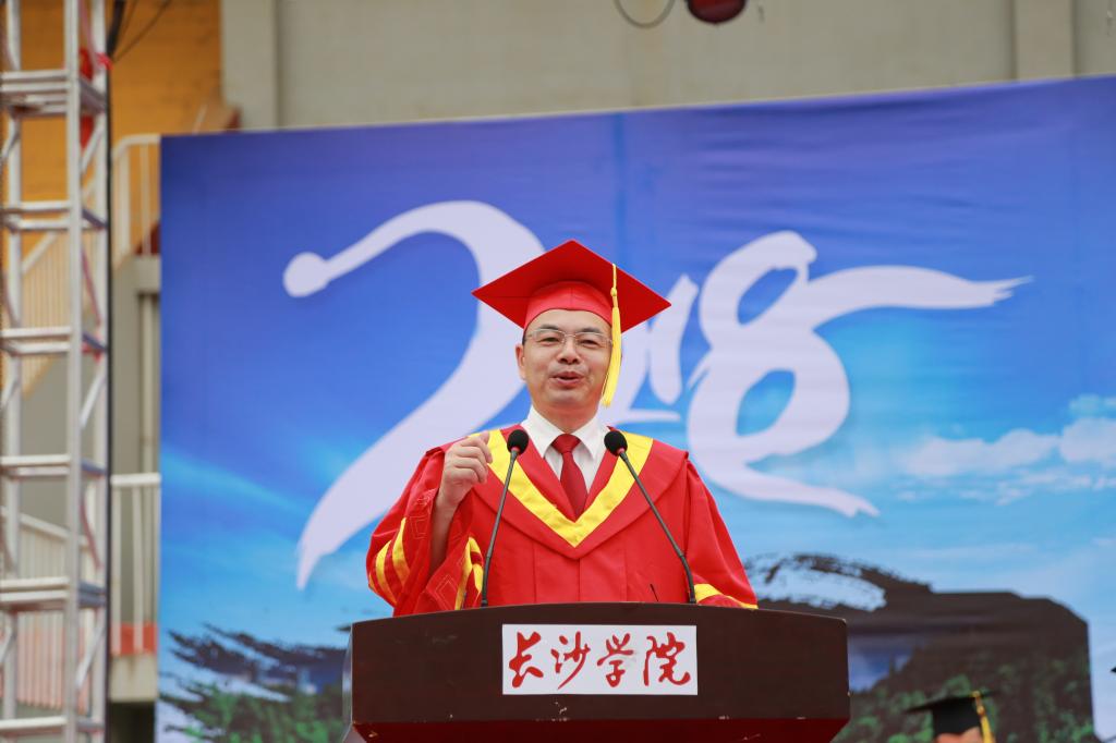 时光荏苒,大学四年弹指一挥间。过去的四年,你们努力进取,收获了知识,增长了才干,开阔了视野,提升了思维,砥砺了品行。在你们中间,有582人次获得了省级以上学科竞赛大奖,有 93人次获得了国家级奖项,有195名同学考上了研究生,有近40位同学参军入伍。也是你们在学校的这四年,学校获批为国家产教融合发展工程应用型本科规划高校、获批为全国实践育人创新创业基地、获批为湖南省硕士学位授予立项建设单位,学校的美誉度、知名度大幅提升!过去的四年里,学校加快建设教学实验楼、新图书馆、礼堂等一批项目,对弘昱、汇泽等宿舍和食堂进行了整体维修改造,同学们学习的条件改善了,吃的住的更好了。学校取得的这些发展和进步,也离不开同学们的努力拼搏。四年前,我几乎与你们同时来到长大,我见证了同学们的成长,也与你们共同见证了学校的发展与进步。作为校长,我为你们成长成才感到欣慰,为学校的发展进步感到骄傲。
