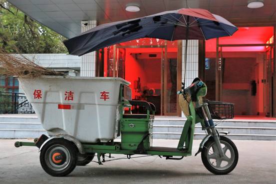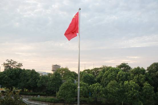 早晨6点,气温29℃,体感温度35.5℃。走出第一办公楼,一辆保洁车平稳地停在办公楼前坪,镜头转向后方,映入眼帘的是这样一幅情景: