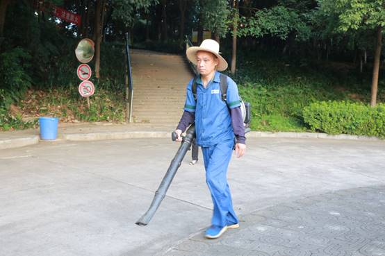 走在龙潭湖畔,所到之处路面十分整洁。远处传来断断续续的机器轰鸣声,循声望去:这是老张背着园林绿化吹风机在龙潭湖周边路面进行清扫。道路两旁聒噪的蝉声全然被吹风机作业声所掩盖。