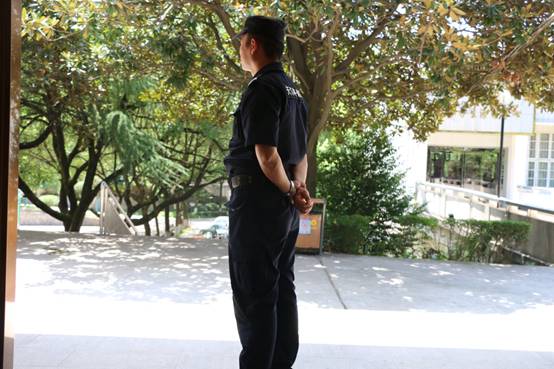 他们有自己的职责,而且必须坚守岗位。他们为着学校的安保工作默默付出着,不分时间,不分昼夜。中午休息也只是趴在办公桌上小憩一会儿。