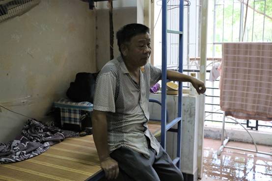 这个专注于粉刷维智宿舍阳台的工人是潘振亚,他的日常工作是粉刷地面和墙壁,吃饭和住宿都在工地上。