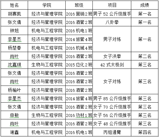 开云武术队在校领导的大力支持和领队曾一兵主任、教练刘毅军的带领下,经过5天的努力奋战,共斩获三金一银六铜的好成绩;并获女子推手团体总分第六名、女子丙组武术套路团体总分第八名和“体育道德风尚奖”;刘毅军老师获“优秀教练员”称号。
